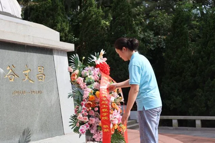 图4 院团委书记牛秋月老师向谷文昌同志雕像敬献花篮