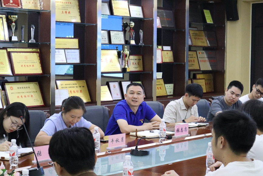 8月29日下午,材料学院在嘉锡楼313会议室召开2024年秋季学期返乡思想动态调研座谈会,由学院团委书记牛秋月老师主持,学院党委张志忠副书记、专职辅导员张庭士老师、张婷老师及学院部分学生干部参加会议。