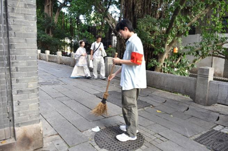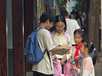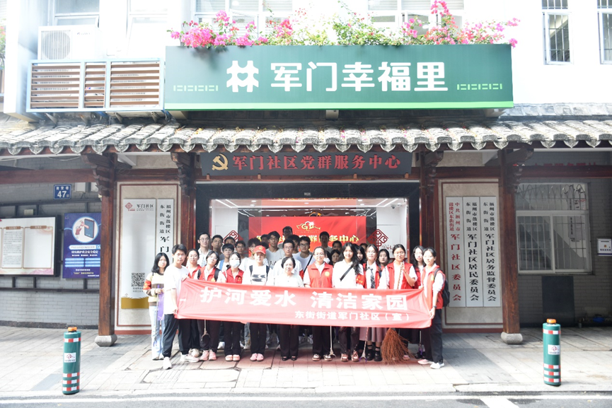 活动伊始,同学们身着鼓楼志愿者服装,投身于河道周围的卫生维护清洁工作。他们手持垃圾袋和清洁工具,仔细清理岸边街道杂物以及水面漂浮废弃物。通过志愿者们的努力,河道环境变得干净了,社区卫生面貌焕然一新。