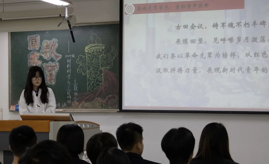 在班会上,康佳怡同学分享了4月20日材料4班部分同学参观成人网站 旗山校区红色文化展览的经历。此次参观以“踏访红色印记,共溯古田征程”为主题,让同学们认识到古田会议意义重大,它确立“思想建党、政治建军”原则,是军队政治工作奠基和新型人民军队定型的关键。同学们还了解到1929年红四军转战面临的困境,如内部诸多分歧和非无产阶级思想泛滥等。但以毛泽东为代表的共产党人深入调研,坚持党对军队绝对领导,化解难题,指明革命方向。最后,康佳怡激励同学们向革命先辈学习,从红色历史中汲取力量,筑牢信念,践行担当,为国家发展贡献力量,勇担新时代青年使命。