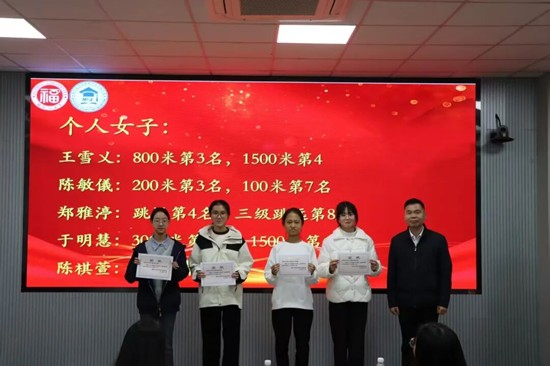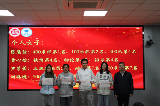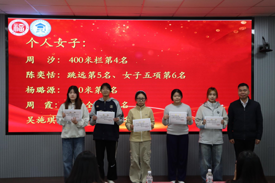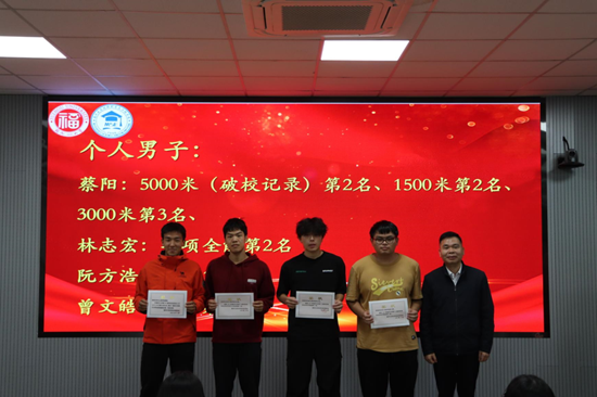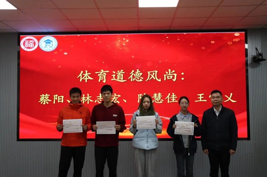 随后,沈庆斌副书记为获奖同学们颁发荣誉证书,肯定了运动员在训练与比赛中的辛勤付出与优异成绩,同时表达了对运动员们奋勇争先、再创佳绩的殷切期许。希望获奖同学珍视荣誉、砥砺前行,以榜样之力带动更多同学逐光而行、共筑华章。