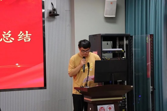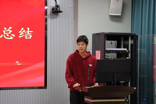 跳组代表徐泽鹏同学先对跳组全体成员端正积极的训练态度与浓厚的训练氛围进行肯定。而后他指出,团队当前仍存在训练方式不够科学、部分运动员易怯场等问题。针对这些不足,他提出后续改进方向:一是加强力量训练与针对性技术打磨,进一步强化运动员爆发力;二是注重比赛心态锤炼,提升临场应变能力,力争在未来的赛事中实现突破。