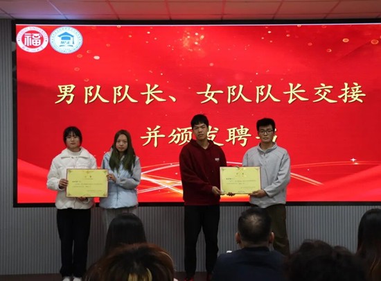 在各组长完成工作总结后,前一届男女队队长林志宏、陈慧佳与新一届队长徐泽鹏、陈祺萱郑重完成交接仪式。聘书的交接,不仅传递了沉甸甸的责任与担当,更见证了团队精神的薪火相传。期待新一届队长带领团队勇毅前行,再创佳绩!
