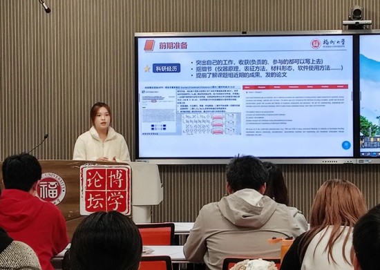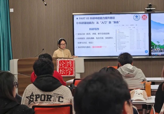 杨璐源学姐首先分享了个人科研心得,她建议同学们充分利用校内外数据库高效开展文献检索,扎实掌握实验设备的操作方法及核心原理,熟练运用Origin等工具完成数据处理与可视化分析。随后,学姐着重强调,科研经历的价值不仅体现在过程中的知识积累与能力成长,更在于通过规范、完整的成果呈现,全面展现自身的科研思维、实践素养与创新潜力,唯有如此,才能在升学申请中占据优势、脱颖而出。
