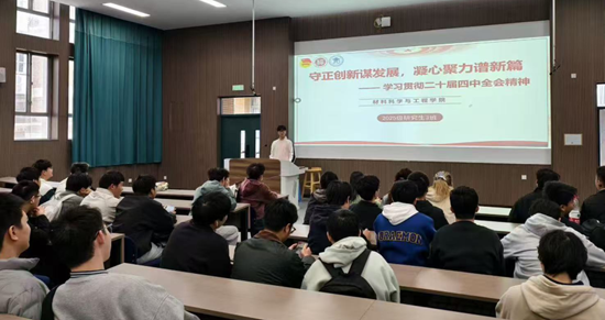 研究生2班召开“深学细悟党的二十届四中全会精神,勇担青年学术使命”主题班会。党的二十届四中全会精神启示同学们治学当明辨是非、求真务实;制度的创新性更激励同学们勇于探索求知、突破思维局限。班长牛宇璐发出倡议:“作为新时代青年学生,我们应将制度意识深植日常学习科研,以明辨之智甄别知识真伪,以笃行之力锤炼专业本领,在课堂钻研中精益求精,在科研实践中坚守学术规范,把个人成长融入制度完善与国家发展大局,以过硬学风与扎实学识践行青年担当!”