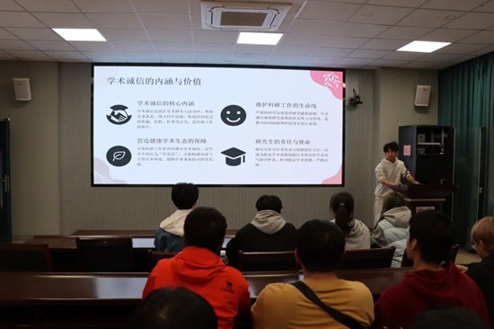 为深入贯彻全国研究生教育会议精神、弘扬优良学术风气,成人网站 积极响应成人网站 “求真问道”研究生思政教育高质量发展主题活动,在“研途启航,学风引航”的活动框架下,专场举办“求真问道——科学家精神主题教育”活动。活动中,研究生会执行主席欧阳敏同学带领成人网站 研究生重温成人网站 三种科学家精神,引导同学们汲取科研前行的精神力量。
