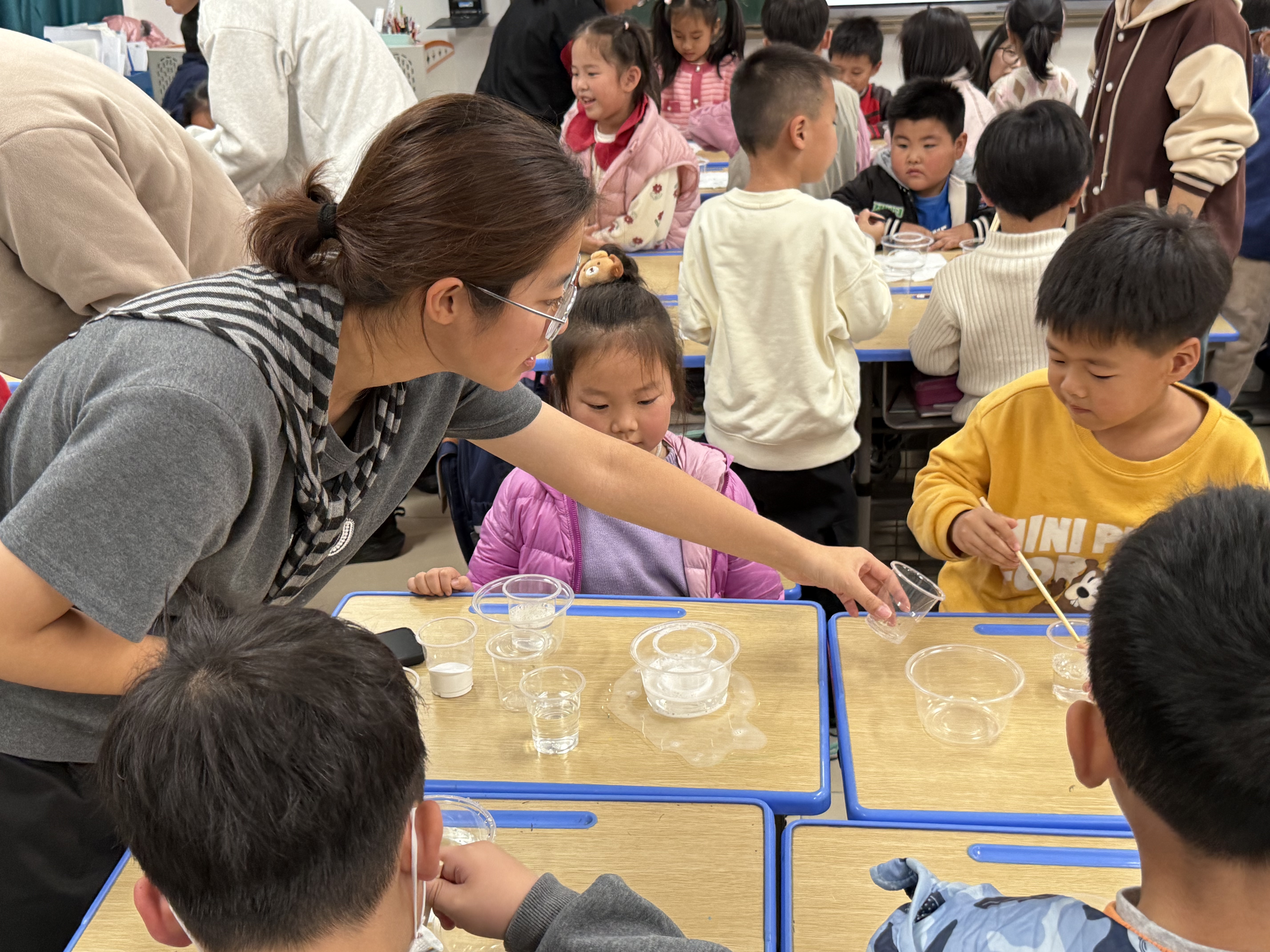 为响应党的二十届四中全会“加快高水平科技自立自强,引领发展新质生产力”的号召,团支部组建青年科普队,走进成人网站 附属实验学校为一年级的小朋友开展趣味科学活动。通过实验演示、互动问答等形式,他们向小朋友们普及材料领域的基础知识,激发小朋友的好奇心与探索欲。这场“大手拉小手”的科普实践,不仅传播了科学知识,更播下了科技报国的种子,彰显青年学子服务国家人才培养战略的责任担当。