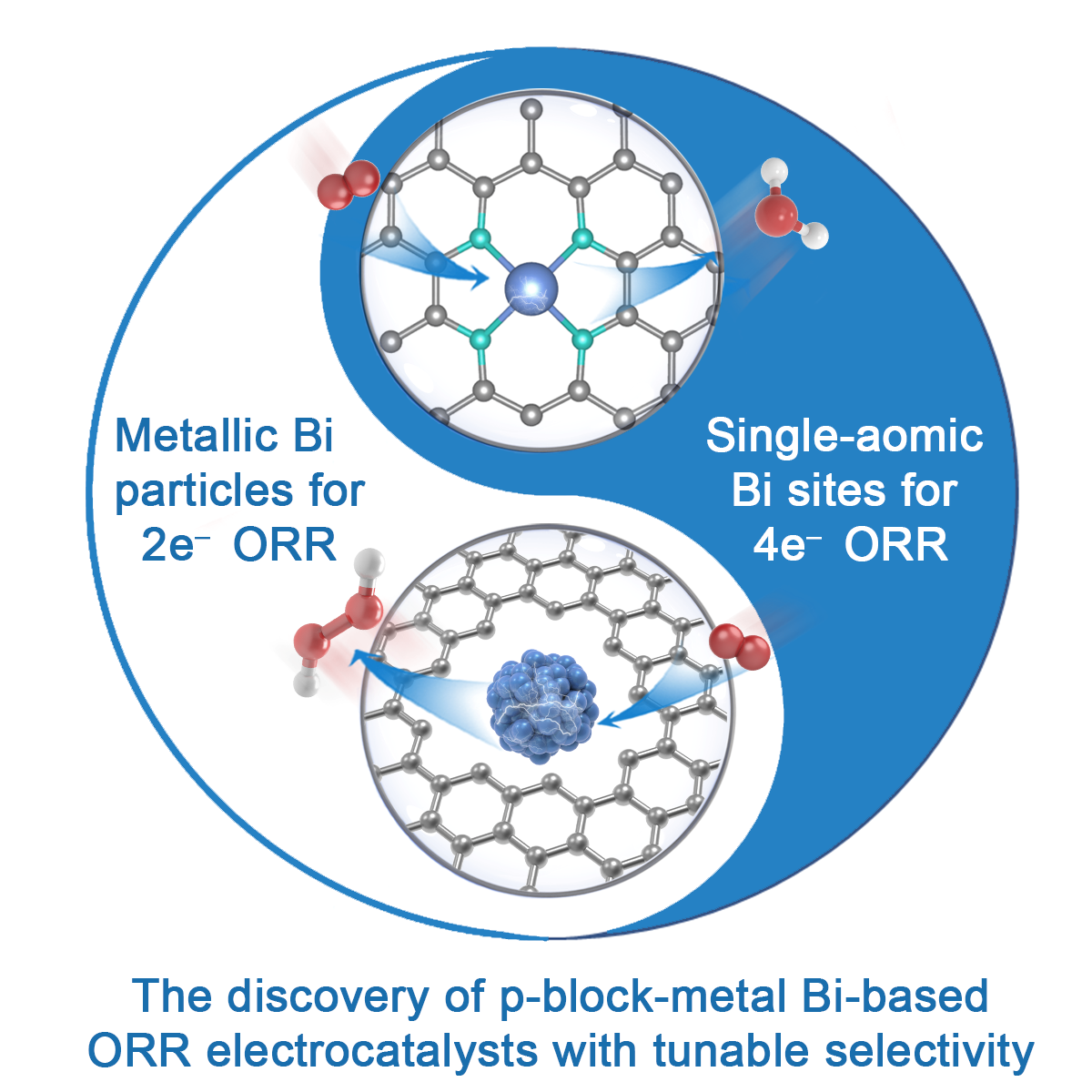 研究团队发现主族金属Bi可以高效催化ORR。本工作首次报告了用于氧还原反应的非铂p区金属Bi催化剂的发现和分析,拓宽了ORR催化剂的资源库,为非贵金属催化剂的研究提供了一个新的方向。用p区金属Bi基催化剂替代铂族金属可能会降低成本并促进电化学H2O2合成和能源装置的应用,具有广阔的发展前景。