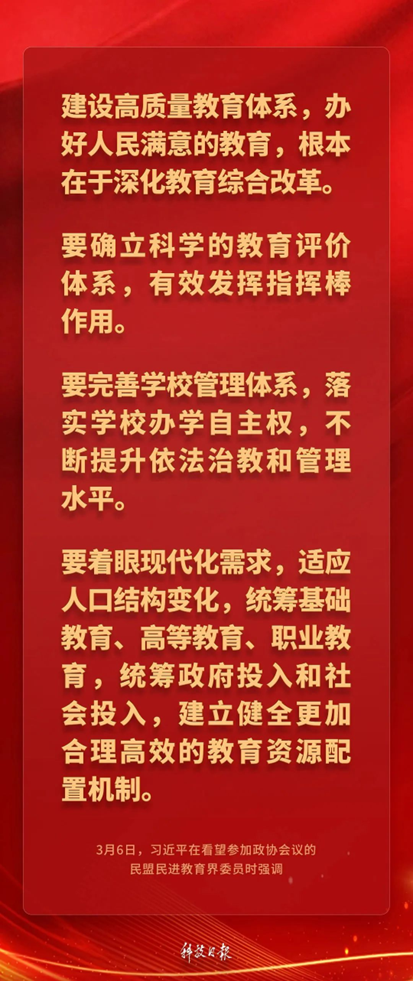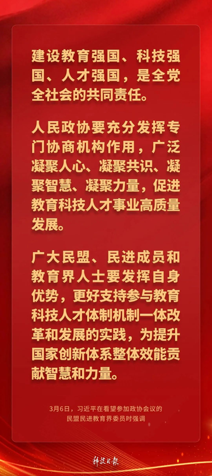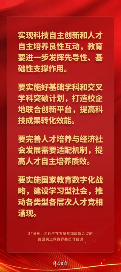 中共中央总书记、国家主席、中央军委主席习近平3月6日下午看望了参加全国政协十四届三次会议的民盟、民进、教育界委员,并参加联组会,听取意见和建议。他强调——