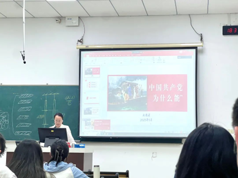 校党委组织部赵艳莉副教授开展《中国共产党为什么能》的专题授课。她以时间为轴,从党的创建历程切入,全景式展现了中国共产党带领中国人民创造的伟大成就,带领全体学员回溯党的百年征程,剖析其成功密码,为新时代青年党员注入精神动力。
