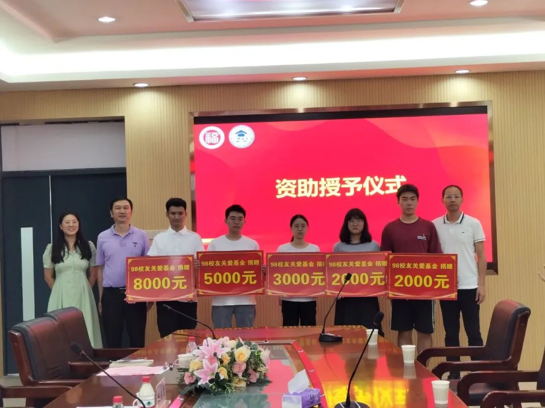 仪式伊始,葛旭东理事长与张志忠副书记共同为受助师生颁发了关爱基金,并合影留念。接着进行校友、师生座谈会,葛旭东理事长介绍了98校友关爱基金的设立初心和意义,结合自身工作及从事资助公益事业经历,强调了在校学生要以学习为重,认真学习专业知识,积极参加活动,在自立自强、增长才干和实现个人发展的过程中将爱心传递。