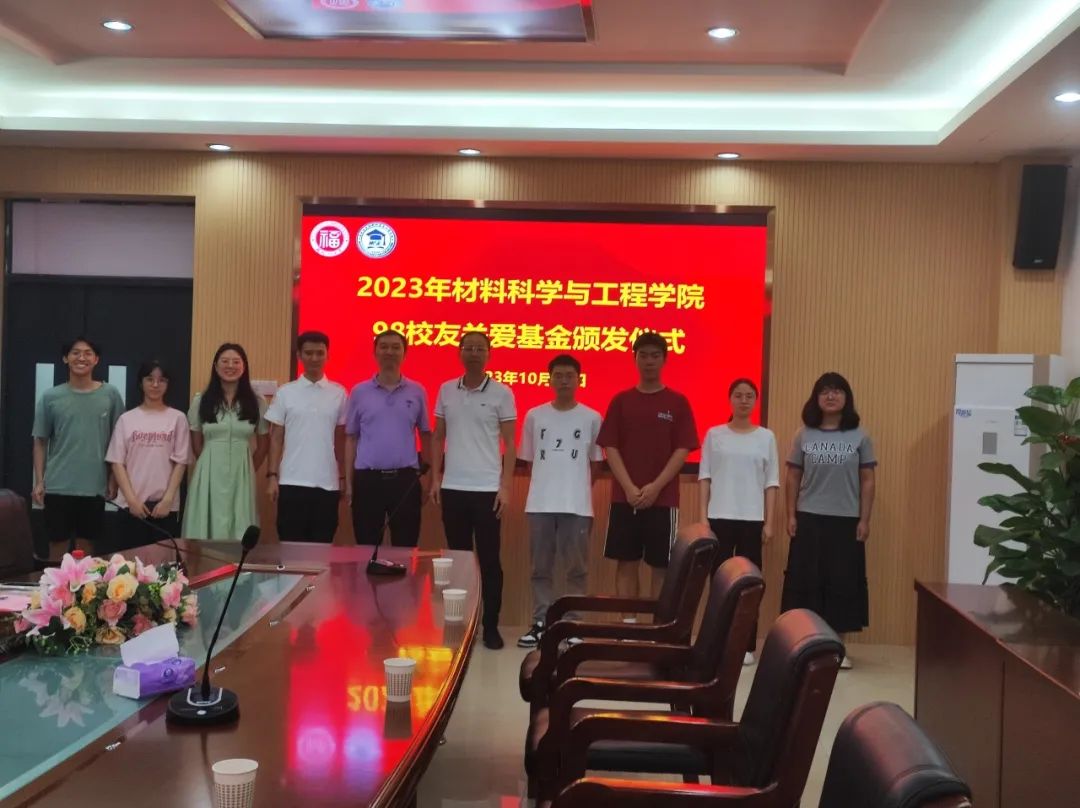 10月19日下午,材料学院于嘉锡楼313举行材料学院25周年院庆系列活动暨98校友关爱基金颁发仪式,1998级校友代表、98基金会葛旭东理事长、院党委张志忠副书记、辅导员张庭士老师出席,由辅导员张丽芬老师主持,受助师生代表参加。