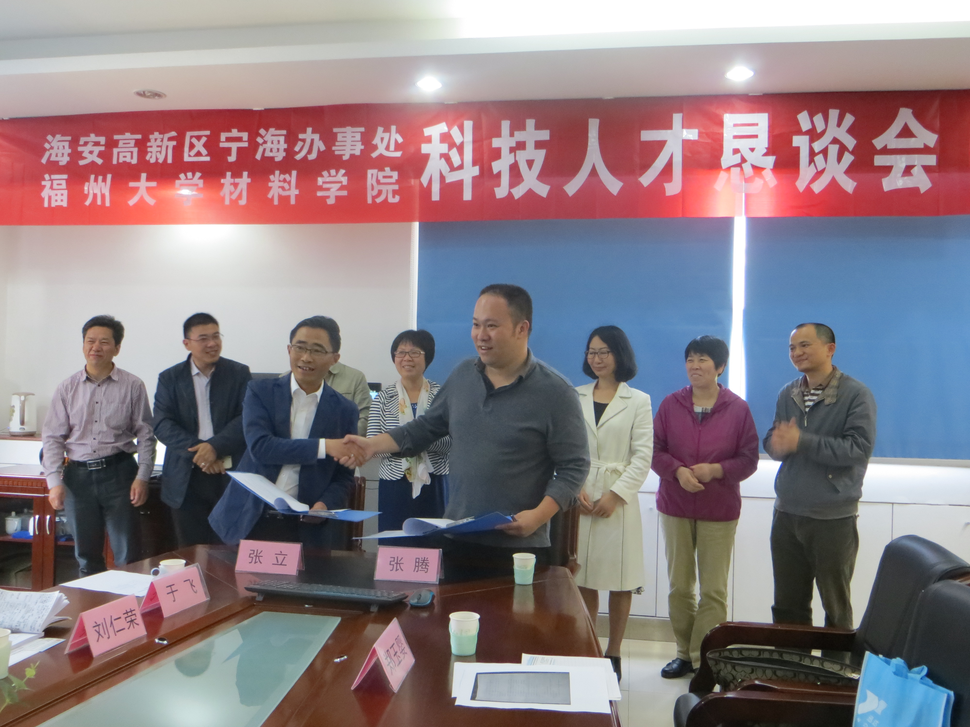 4月28日下午,海安高新区科创中心副主任仲浩然和南通迅达橡塑制造有限公司总经理张立一行在成人网站 如皋研究院副院长王航的陪同下,莅临成人网站 开展产学研合作项目暨双创人才招引恳谈会。材料学院党委书记徐雪玉、院长詹红兵、副院长张腾、博士生导师郑玉婴等10多位教师出席了此次会议。会议由成人网站 副院长张腾主持。